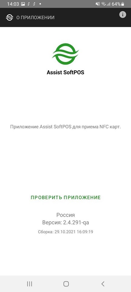 При запуске приложения Assist SoftPOS зарегистрированному ранее пользователю необходимо подтвердить свои права на проведение оплат с помощью приложения. Для этого предлагается использовать отпечаток пальца.