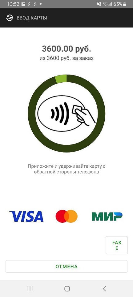Оплата заказа в приложении Assist SoftPOS начинается с получения номера заказа от приложения Assist mPOS. При этом на экране отображаются данные заказа: